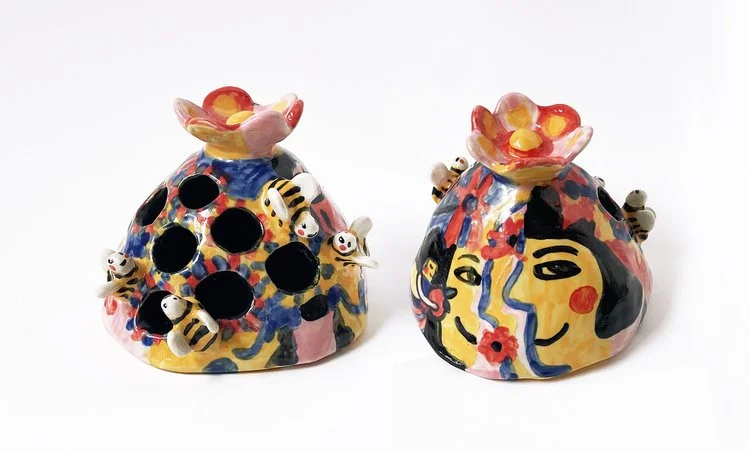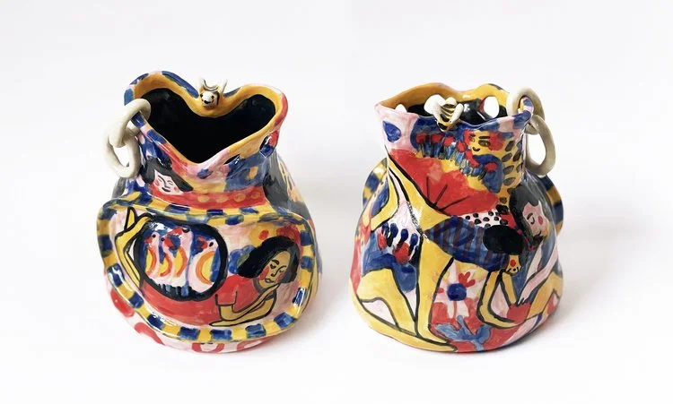Sunrise Together ● stoneware, underglaze, glaze, resin 21cm H x 18cm W x 10cm D