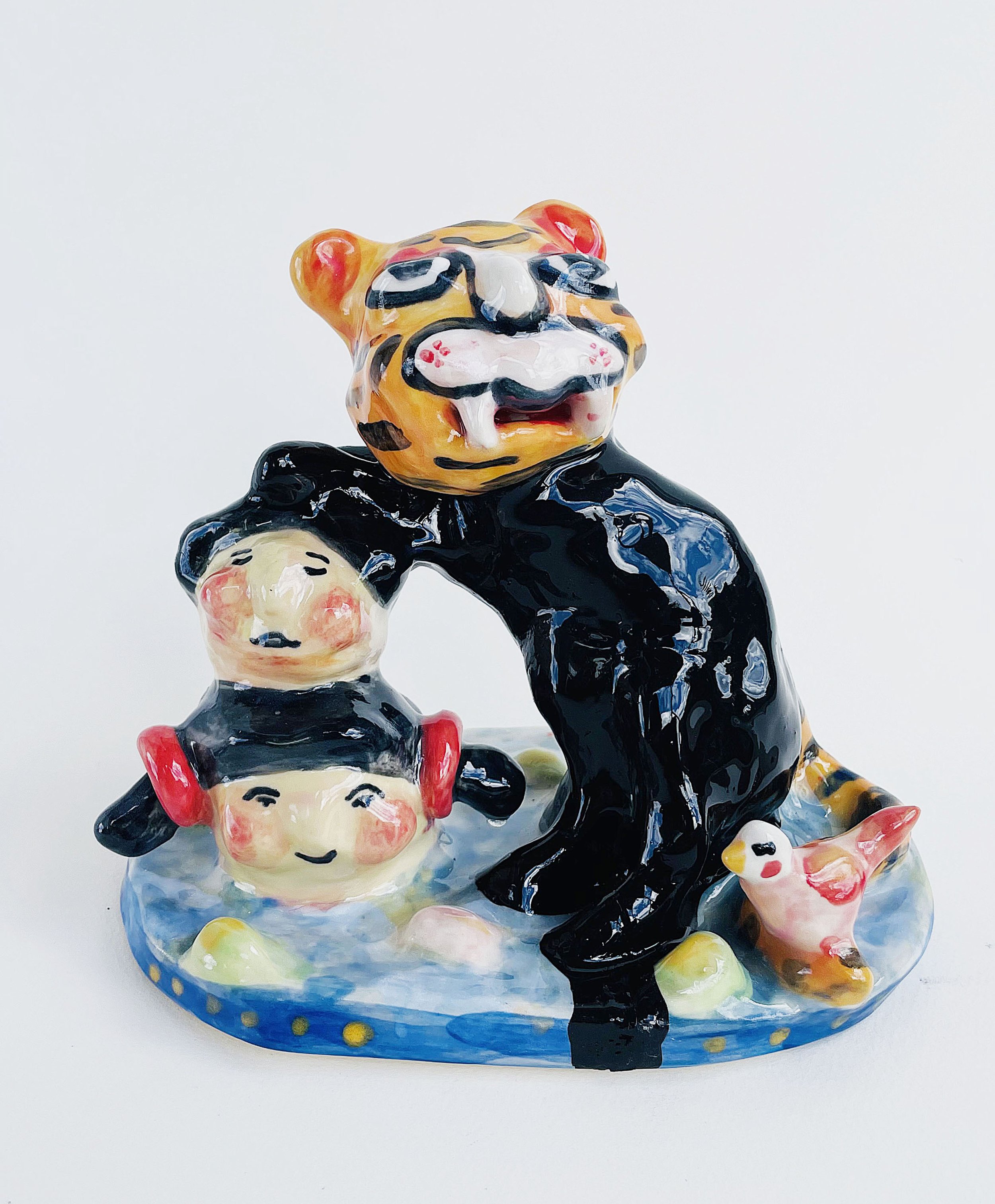 Macan ● stoneware, underglaze, glaze, resin 20cm H x 16cm W x 10cm D