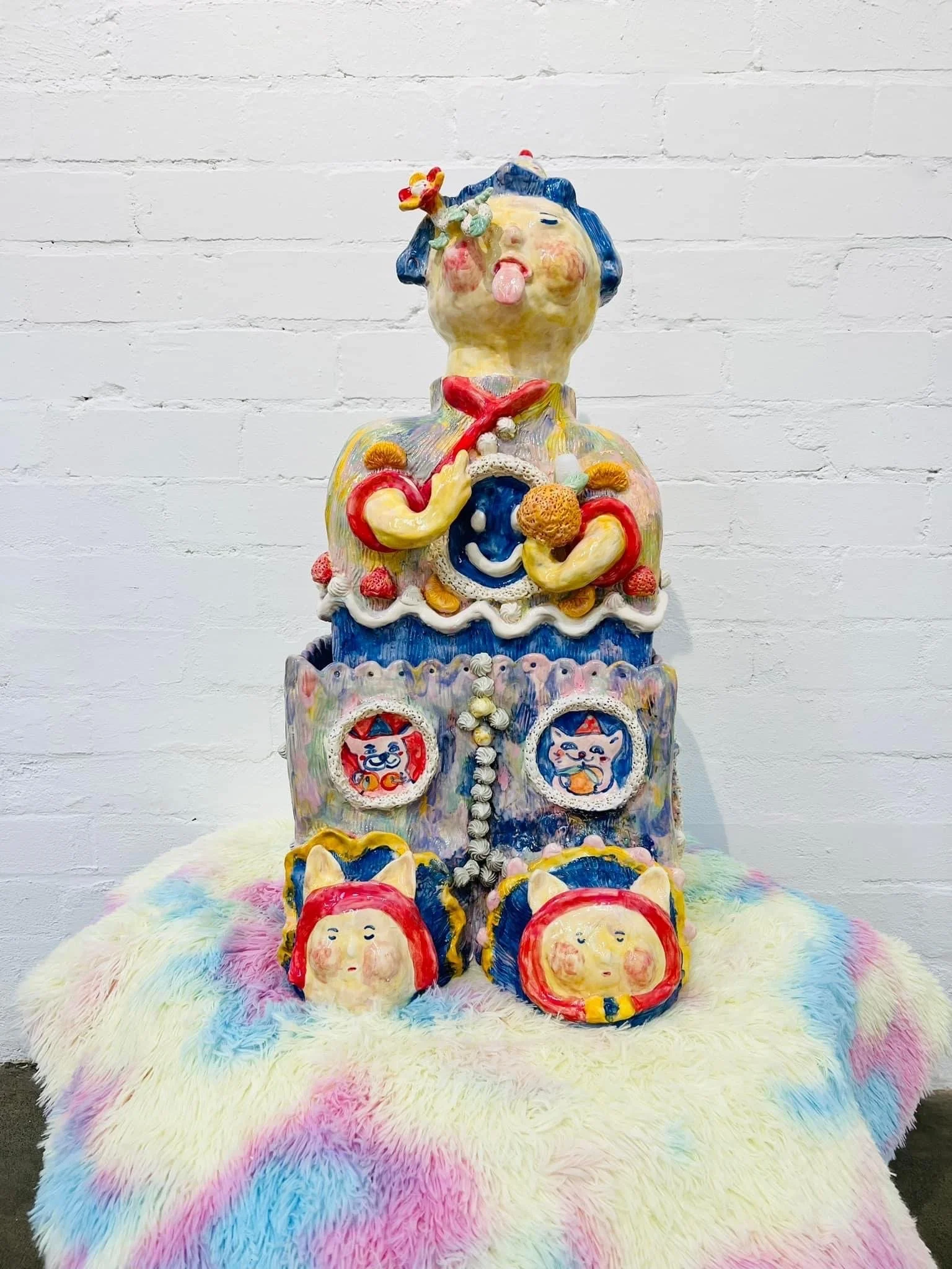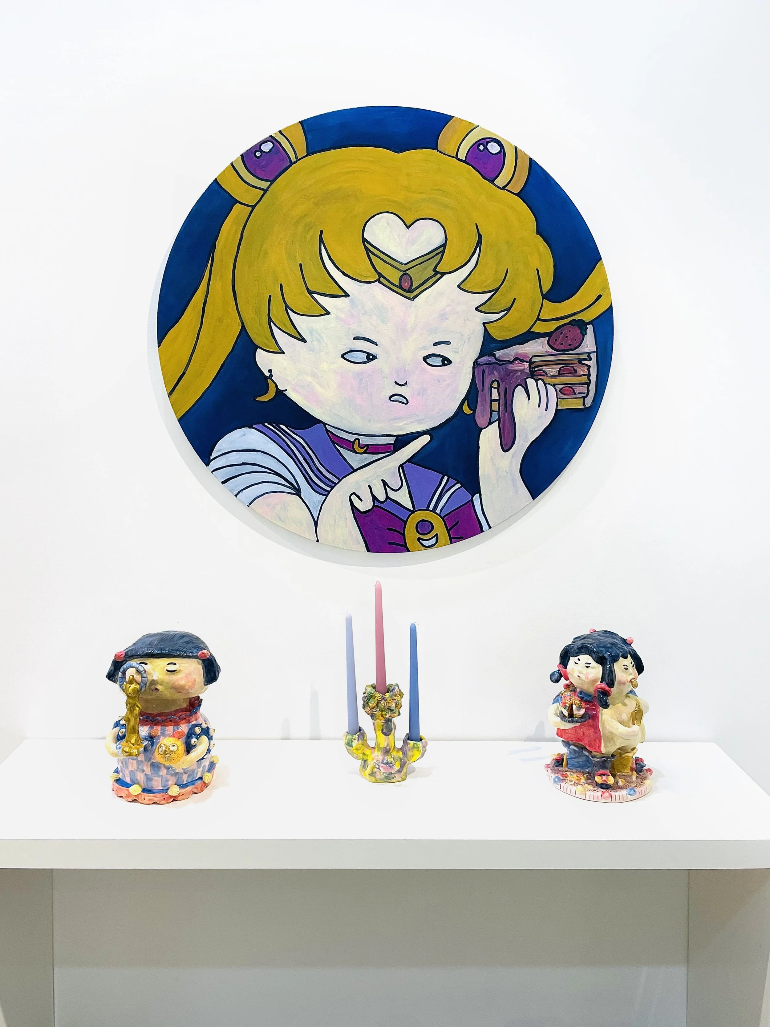 More Birthday Cake explores the multifaceted nature of celebration and its bittersweet relationship with time. Using birthday cake as a symbol of life’s cyclical milestones, the work reflects on how joyous rituals evolve into nuanced reflections on ageing and transience. Through painting, sculpture, and installation, the vibrant hues, bold brushstrokes, and textured surfaces evoke the complex emotions of festivity, blending enthusiasm with introspection.